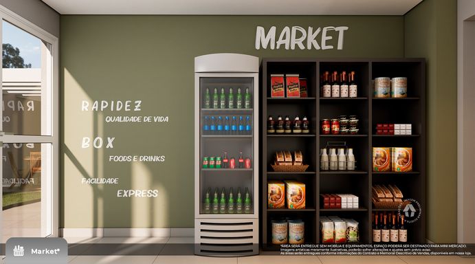 Laser: Lavanderia / Churasqueira / Academia / Bicicletario / Portaria / Mine Mercado