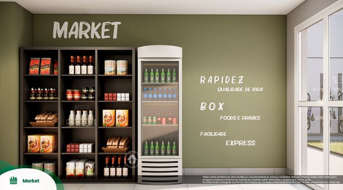 Laser: Lavanderia / Churasqueira / Academia / Bicicletario / Portaria / Mine Mercado
