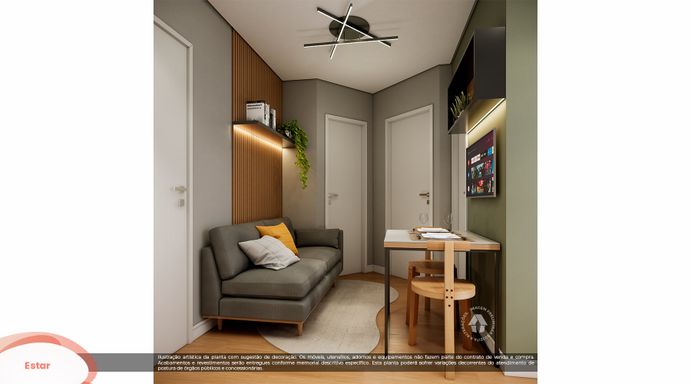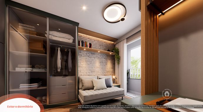 Áreas Privativas: Studio: 17m² / 1 Dorm + Office: 26m² á 27m²