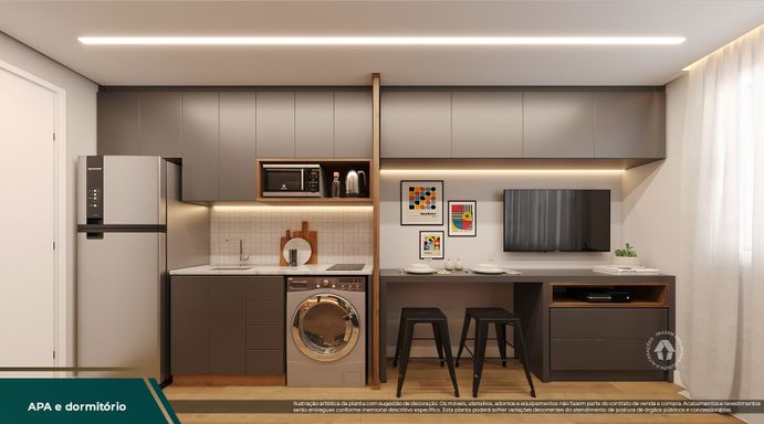 Áreas Privativas: Studio: 17m² / 1 Dorm + Office: 28m² á 29m² / Cobertura Duplex: 57m² á 76m²