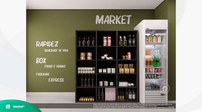 Laser: Lavanderia / Churasqueira / Academia / Bicicletario / Portaria / Mine Mercado