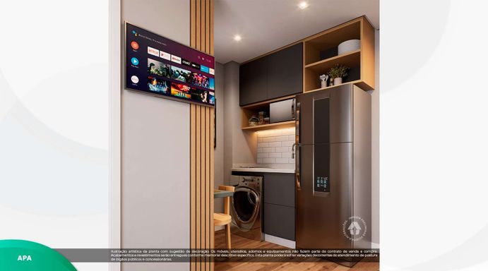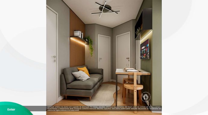 Áreas Privativas: Studio: 17m² / 1 Dorm + Office: 26 á 27m²