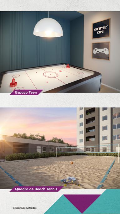 Área Privativa: 1 dorm (24m²) / 2 dorms (31m²) / 2 dorms c/sacada (34m²) / 2 dorms c/sacada (36m²)