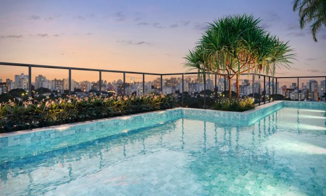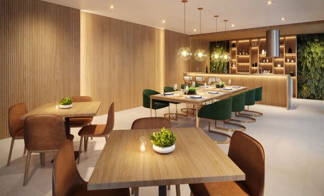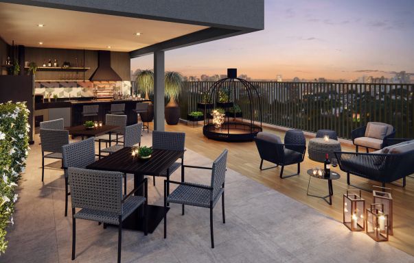 Laser: Piscina / Salão de Festas / Churrasqueira / Espaço Zen / Pet Place / Playgroud / Lobby / Coworking / Fitness / Salão de Jogos