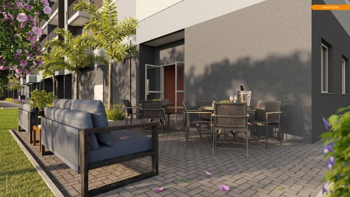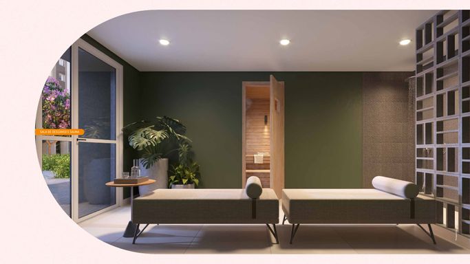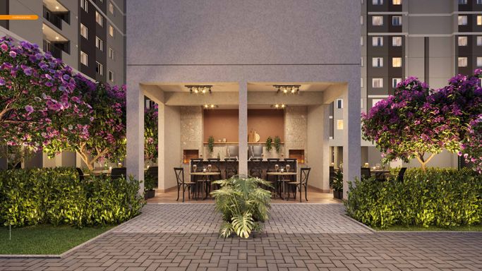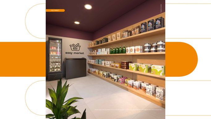 Delivery / Easy Market 1 / Coworking / S a l ã o d e Fe s t a s / Fitness / Lavanderia1 / Brinquedoteca / Salão de Jogos / Sport Bar / Pet Care / Sala de Descanso e Sauna / Churrasqueiras / Piscina Adulto e Infantil / Jardim de Estar / Bicicletário / Redário / A p o i o Fe s t a s / Horta / Pet Place / Fitness Externo / Playground / Fu t Lo u n g e / Miniquadra / Beach Tennis / Pista de Caminhada