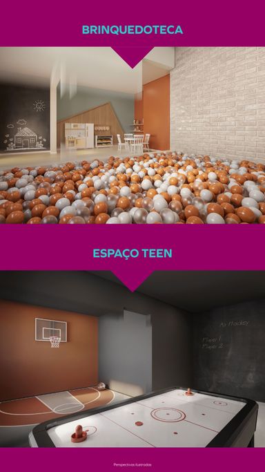 Laser: Salão de Festas / Coworking / Academia / Espaço Funcional / Brinquedoteca / Espaço Teen / Churrasqueira / Bicicletário / Playgroud / Lavnderia / Piscina