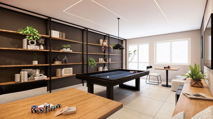 Laser: Bicicletário / Churrasqueira / Piscina Adulto e Infantil / Sala de Jogos / Sala de Festas