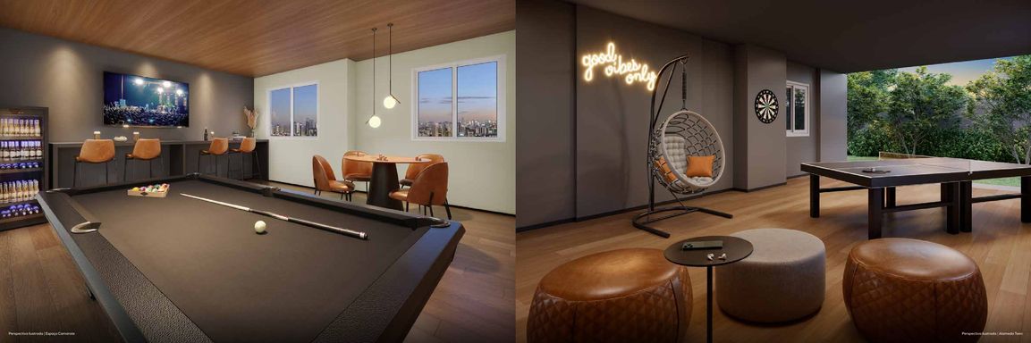 Laser: Churrasqueira / Academia / Brinquedoteca / Playground / Salão de Festas / Bicicletário / Lavanderia