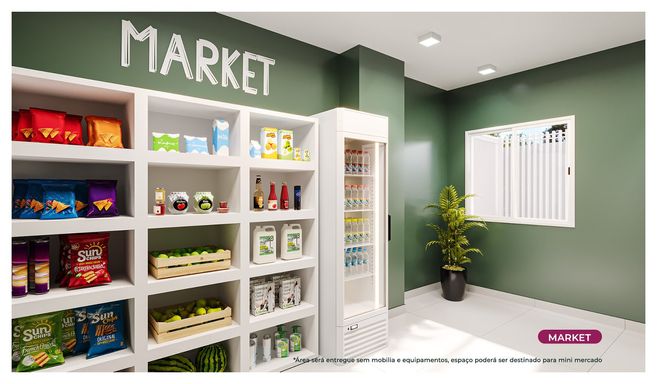 Laser: Lavanderia / Churasqueira / Academia / Bicicletario / Portaria / Mine Mercado