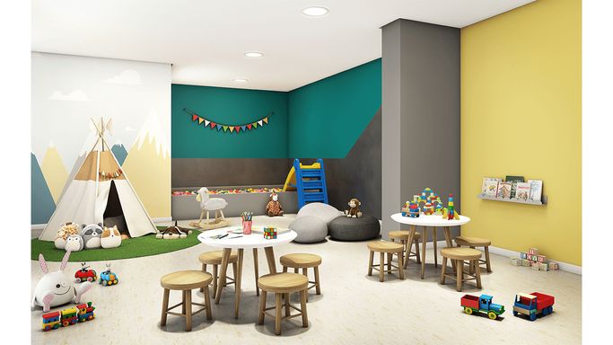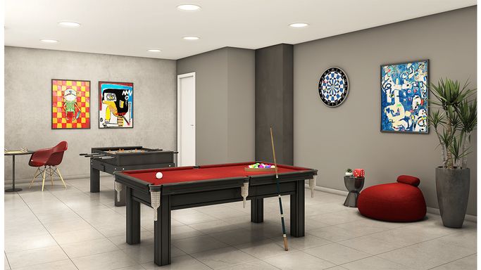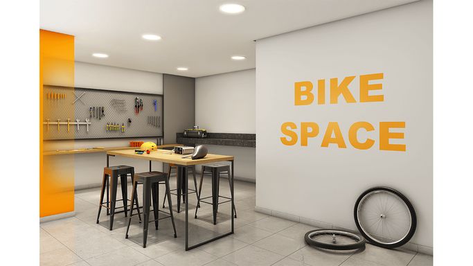 Laser: Piscina adulto e infantil / Churrasqueira (2x) / Playground (2x) / Quadra / Pet care / Oficina de bikes / Pet care/ Espaço Gourmet / Salão de Festas/ Salão de Jogos / Brinquedoteca / Coworking / Espaço delivery / Bicicletário