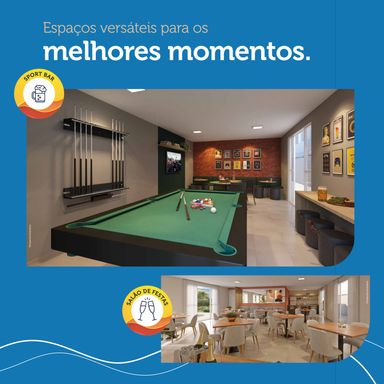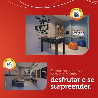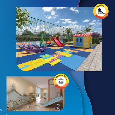 Laser: Minemercado / Lavanderia / Espaço Goumert / Churrasqueira / Playgroud / Piscina Adulto e Infantil / Brinquedoteca / Fitness / Salão de Festas / Playbaby