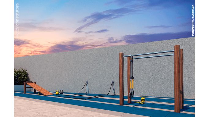 Laser: Lazer completo / Terraço gourmet / Salão de Festas / Bicicletário / Espaço Gourmet / Brinquedoteca / Fitness / Salão de Jogos / Pet Care / Coworking / Piscina adulto e infantil / Quadra / Churrasqueira / Play aventura / Play baby / Fitness externo / Solário