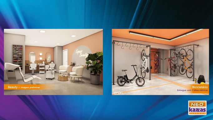 Laser: Bicicletário / Coworking / Salão de Festas e Jogos / Playgroud / Piscina / Minemercado / Brinquedoteca