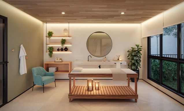Laser: Bicicletário / Espaço Fitness / Cowowrking / Lavanderia / Minemercado / Salão de Festas / Espaço Goumert / Churrasqueira / Saina / Massagem / Piscina