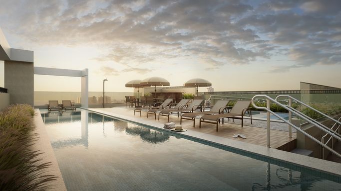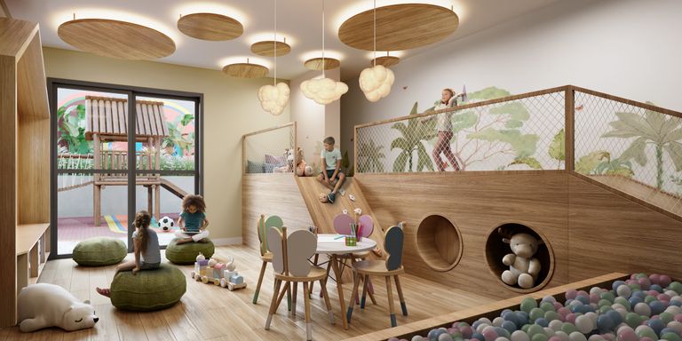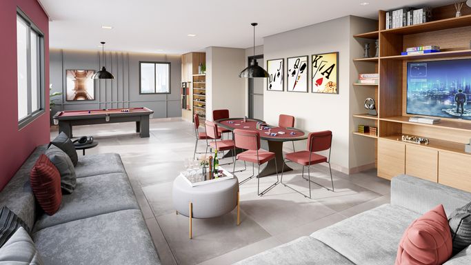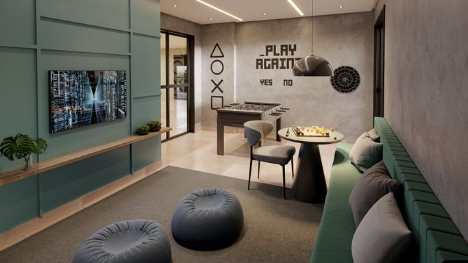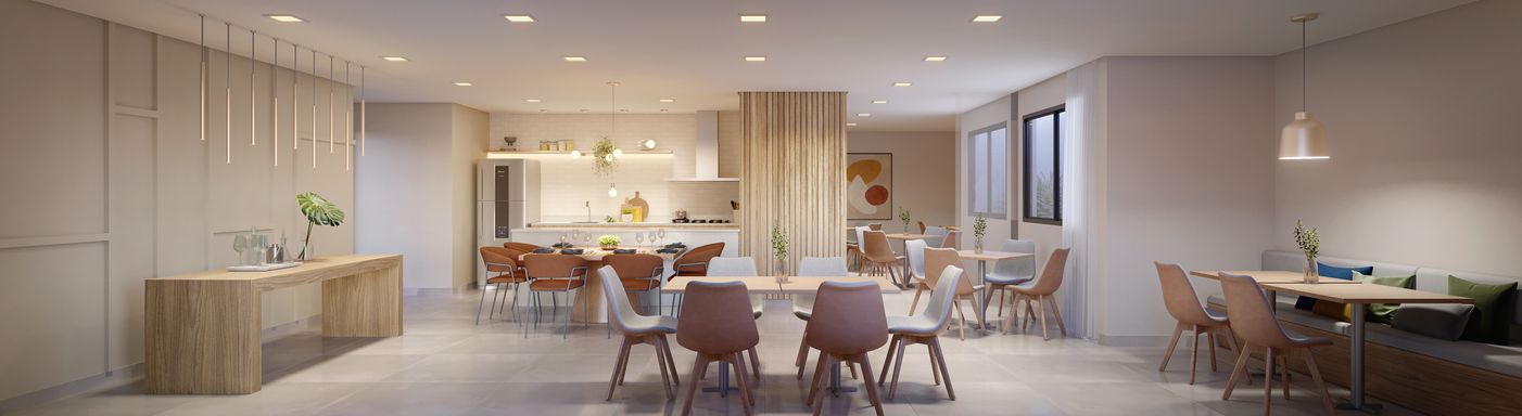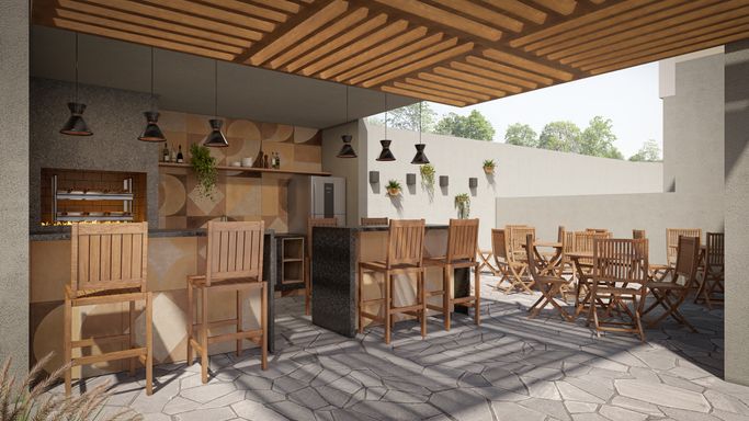 Laser: Mini Mercado / Salão de Festas / Espaço Gourmet / Churrasqueira / Brinquedoteca / Playground / Coworking / Piscina Infantil e Adulto