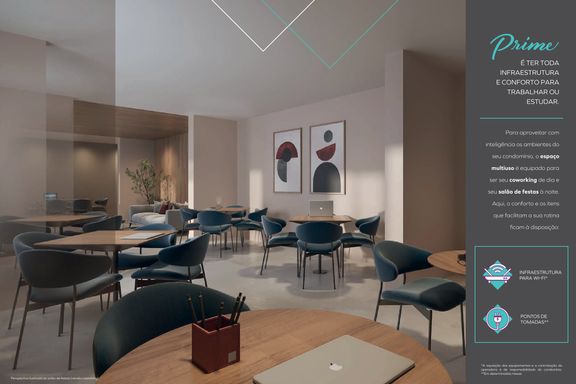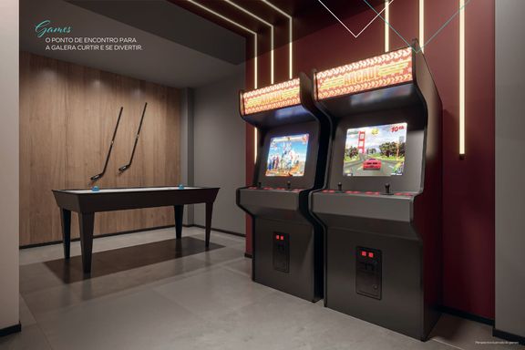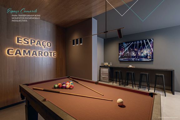 Laser: Coworking / Minimercado / Piscina Adulto / Solarium / Piscina Infantil / Churrasqueira / Salão de Festas / Playground / Brinquedoteca / Games
