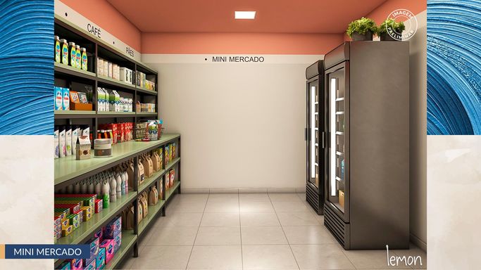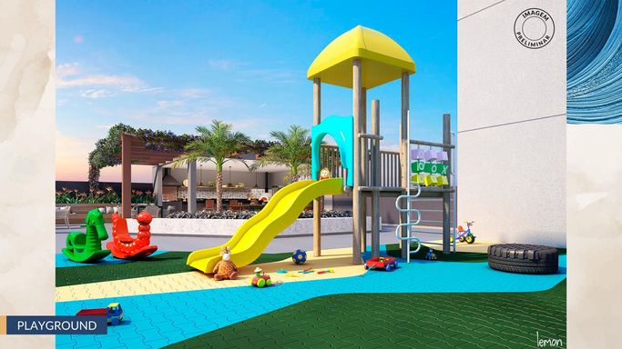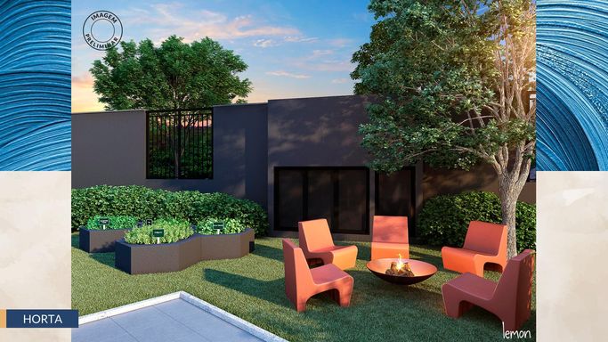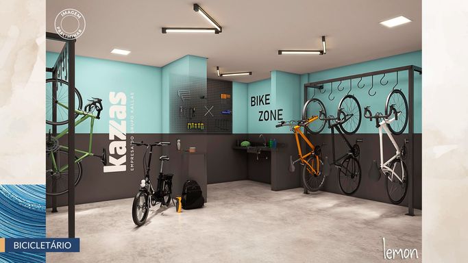 Laser: Bicicletário / Minemercado / Salão de Festas / Fitness / Brinquedoteca / Espaço Goumert / Horta
