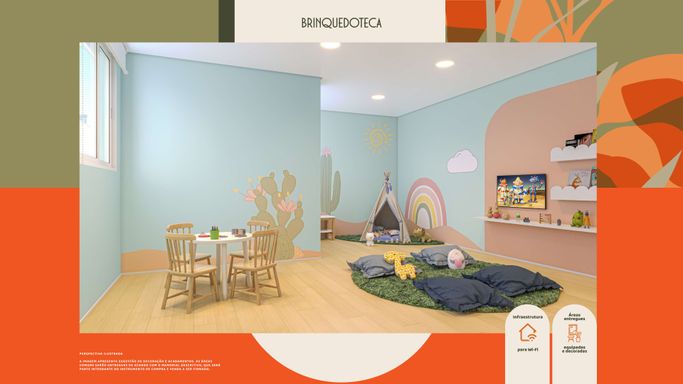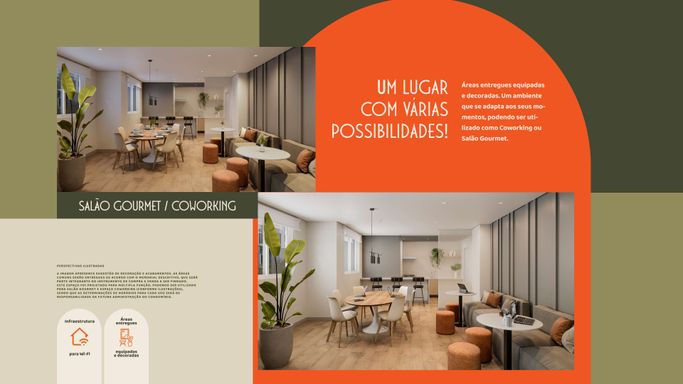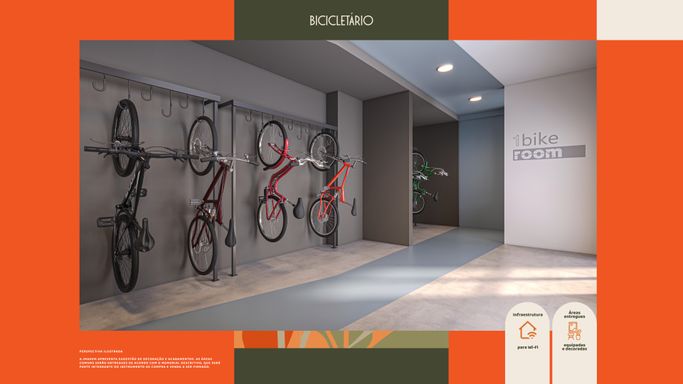 Laser: Coworking/ Salão Gourmet / Brinquedoteca / Salão de Festas / Salão de Jogos / Bicicletário / Academia / Piscina adulto / Piscina infantil