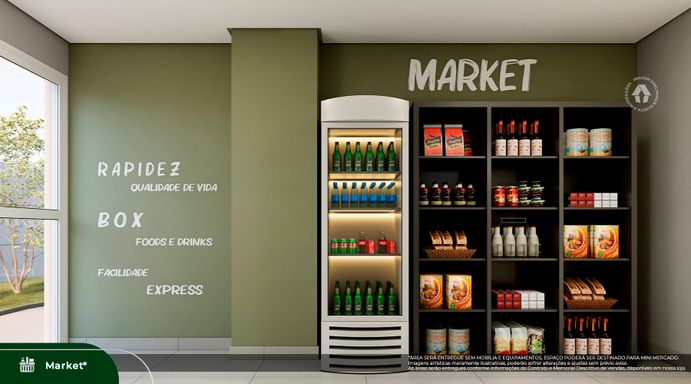 Laser: Lavanderia / Churasqueira / Academia / Bicicletario / Portaria / Mine Mercado