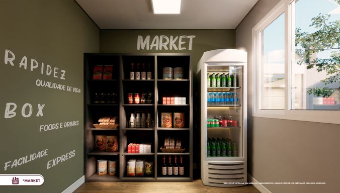 Laser: Lavanderia / Churasqueira / Academia / Bicicletario / Portaria / Mine Mercado