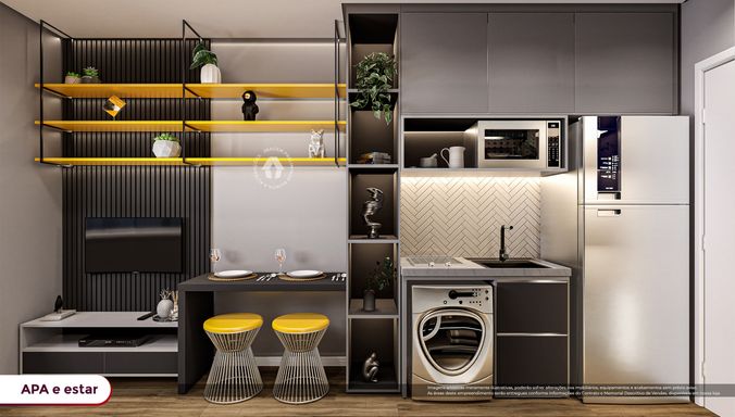 Áreas Privativas: Studios: 17m² / 1 Dorm: 25m² á 33m² / 1 Dorm + Office: 28m² á 29m² / 2 Dorm: 35m² / Penthouse: 64m² á 66m² / Cobertura uplex: 67m² á 151m²