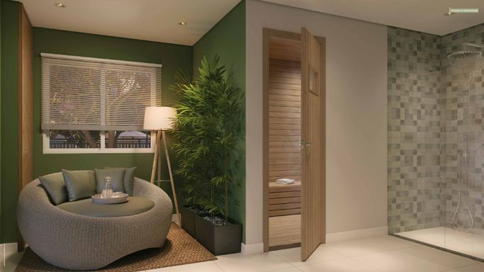Área Privativa: 34m² 1 dorm PNE / 2 DORMS C/ SUÍTE /