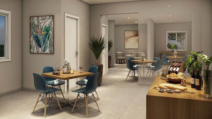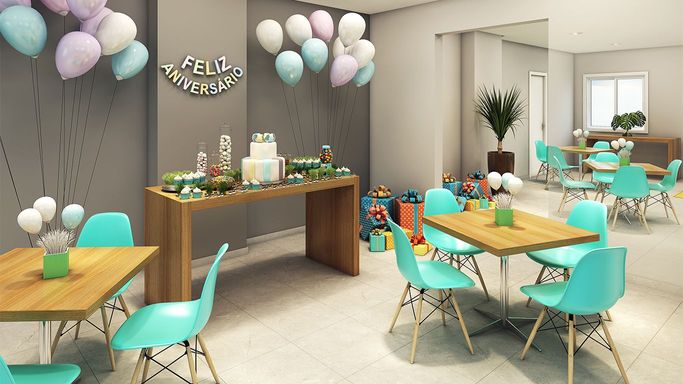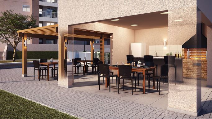 Laser: Piscina adulto e infantil / Churrasqueira (2x) / Playground / Quadra / Pet Place / Coworking / Fitness / Brinquedoteca / Salão de Jogos / Salão de Festas Adulto / Salão de Festas Infantil