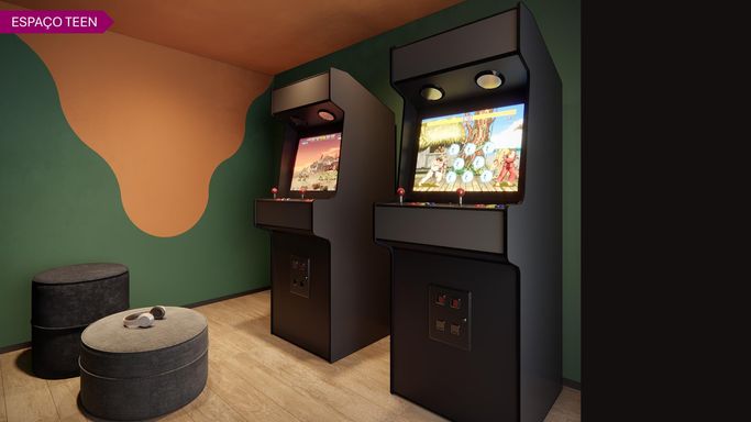 Laser: Lavanderia Coletiva / Brinquedoteca / Playground / Churrasqueira / Academia