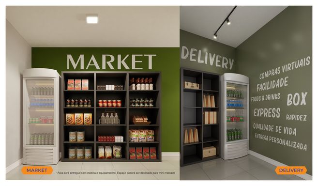 Laser: Lavanderia / Academia / Bicicletario / Portaria / Mine Mercado