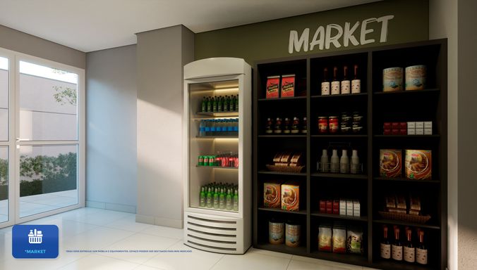 Laser: Lavanderia / Churasqueira / Academia / Bicicletario / Portaria / Mine Mercado