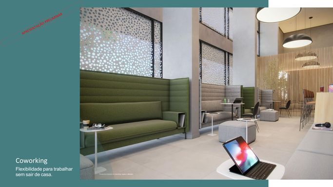 Laser: Coworking / Minemercado / Fitness / Brinquedoteca / Playgroud / Piscina Adulto e Infantil / Bicicletário / Salão de Jogos e Festas