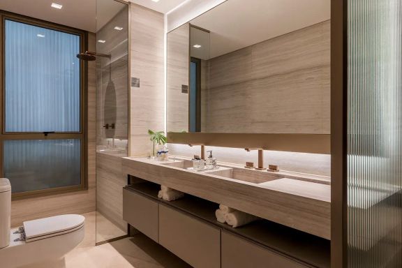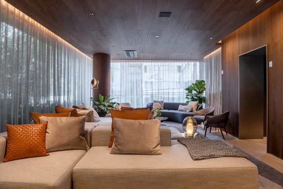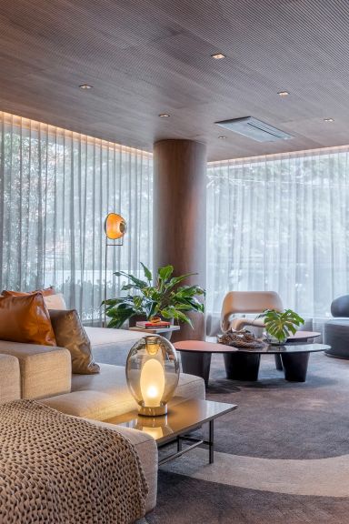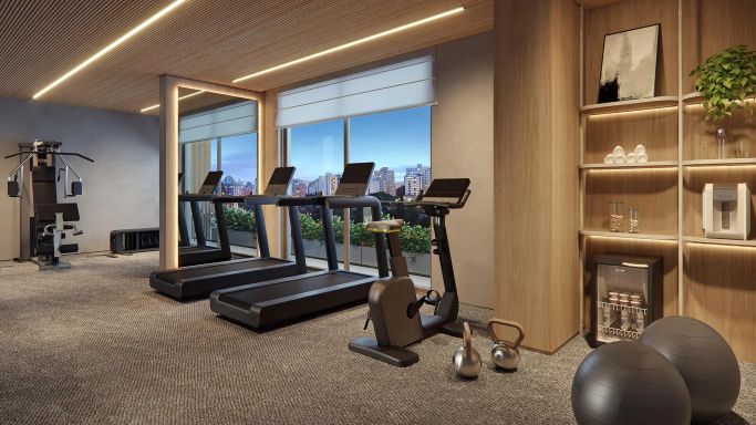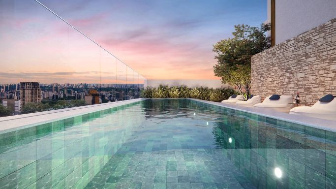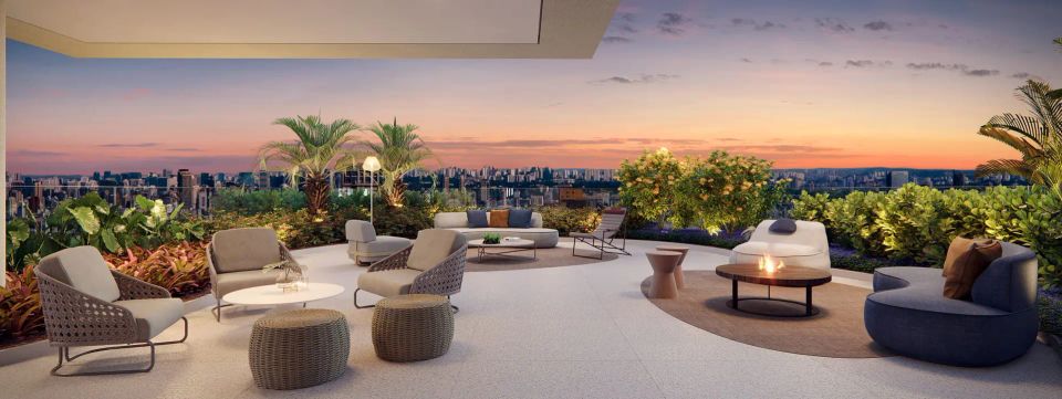 Laser: Lobby social / Galeria Indoor / Outdoor / Library Room / Library Terrace / Fitness com equipamentos de marca / Spa / massagem / Sauna seca / Piscina / ky pool / rooftop com vista panorâmica / rooftop view / errace Lounge / Lounge Outdoor / Hall privativo / elevador