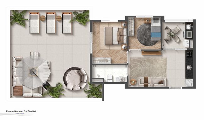 Planta Inteligente: 2 dormitórios com 72,40 m² muito bem distribuídos.