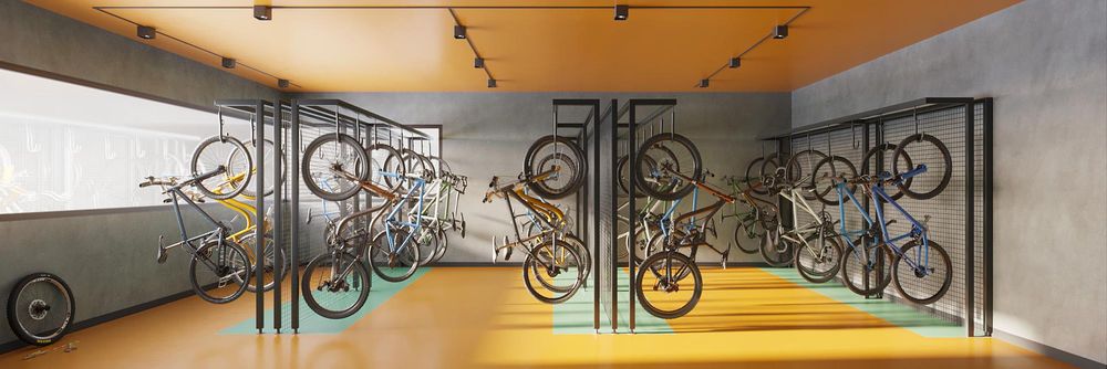 Bicicletário com tomada para bike e patinete elétrico.
