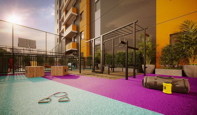 Saúde e Esporte: Academia, CrossFit, Quadra Recreativa e Praça de Leitura.