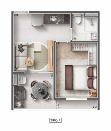 Plantas inteligentes de 32,01m² (1 dormitório) projetadas para o máximo aproveitamento: